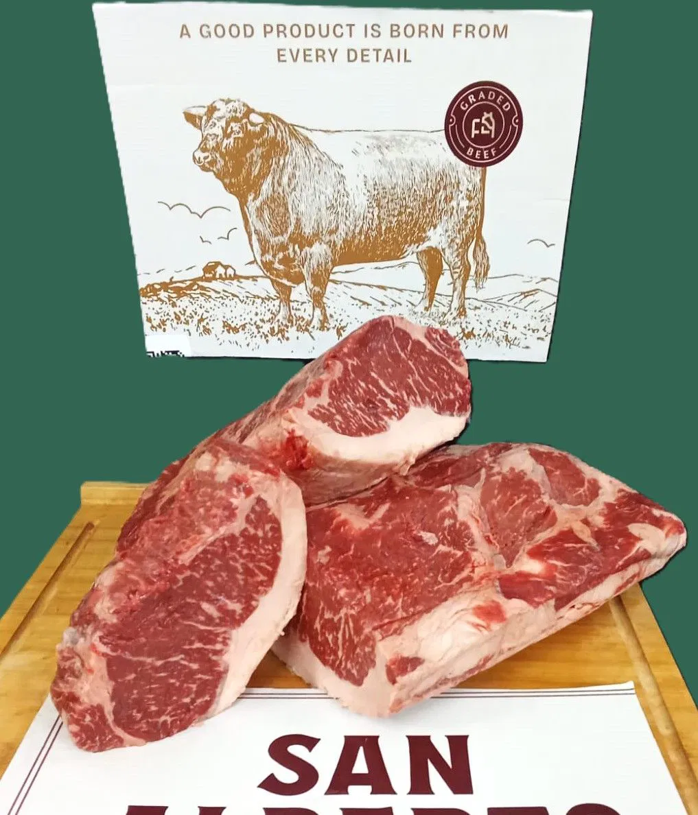 El Black Angus uruguayo es una carne de res de alta calidad, conocida por su sabor intenso y equilibrado, marmoleo moderado y textura tierna y firme, que se debe a su crianza extensiva en pastos naturales.